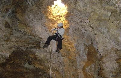 gruta com entrada em rappel de cerca de 40